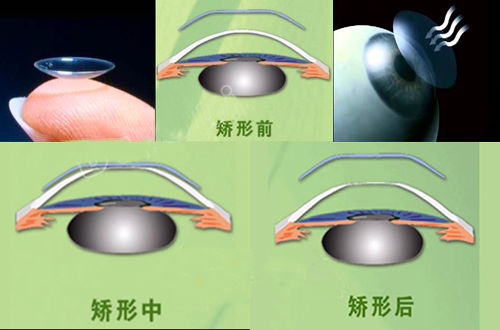 角膜塑形镜外表面与普通隐形眼镜一样,是一单一弧度,而内表面较为复杂,分为基弧、反转弧、定位弧、周边弧共四个弧,有些品牌定位弧是两个,共5弧。 角膜塑形镜“治疗”近视的原理是通过中央逆几何设计的基弧区,借助泪液的正向压力,反转弧负向吸引力,加
