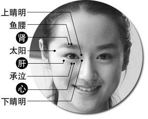 A.先提上睑肌4~5遍。B.按上下睛明穴(两侧内眼角稍上凹陷处),各数到60。早上太忙时,就数到40下。C.为了省时间,并且穴位准确和周到,然后: 无名指和中指竖向并拢,揉按印堂穴60下